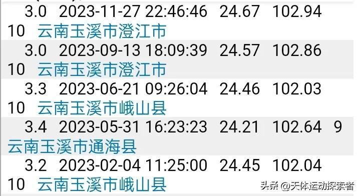 云南玉溪市及周边范围在历史上都是地震多活动多规模强度大的地区,2023年11月27日玉溪澄江市发生3级地震就是发生在这条活动规模强度大的小江断裂带上,小江断裂带在历史上发生过多次6级以上地震和一次8级地震。