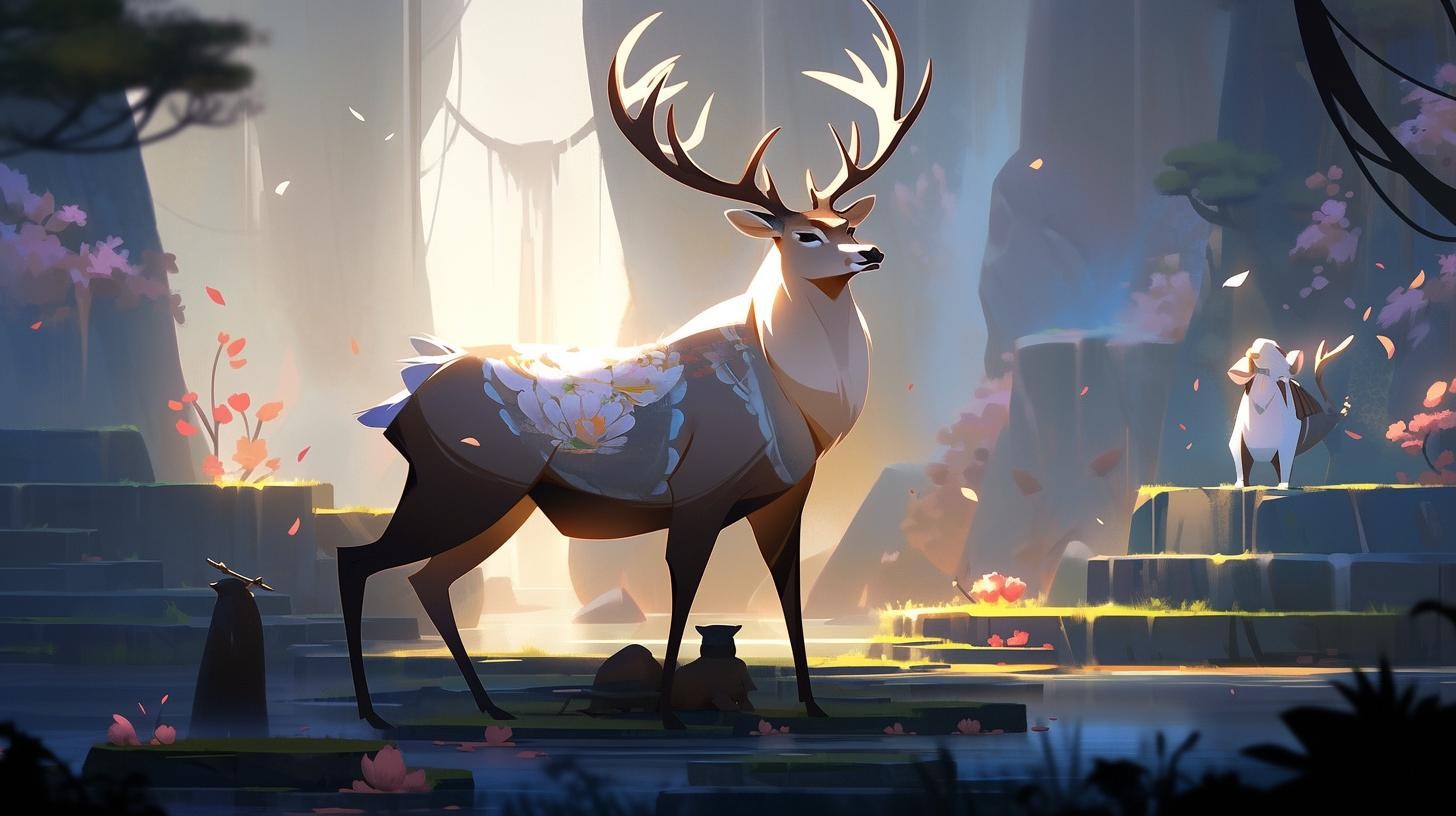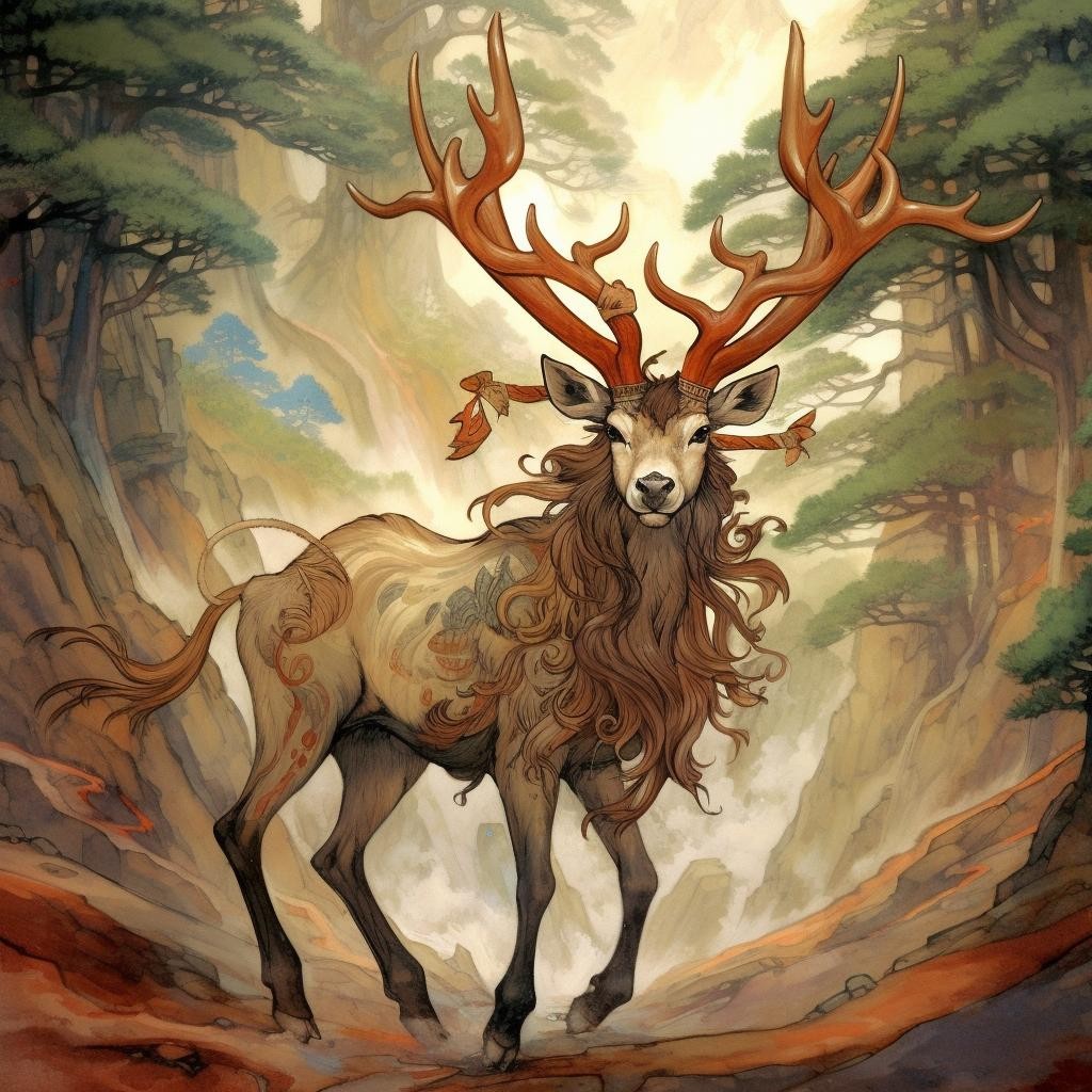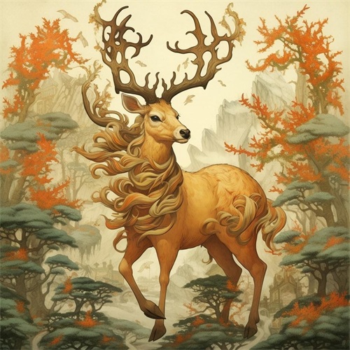 鹿蜀是中国古代神话中的一种动物,也被称为“蜀鹿”或“蜀山神鹿”。据传说,鹿蜀生活在中国四川的峨眉山中,是一种能够呼风唤雨、掌控天地的神兽。它的形象是一只角长尾短、毛色金黄的鹿,被认为是吉祥之物和祥瑞的象征。