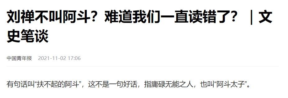 1、原文刊登于中国青年报2021-11-02发布的关于《刘禅不叫阿斗?难道我们一直读错了?|文史笔谈》的报道;
