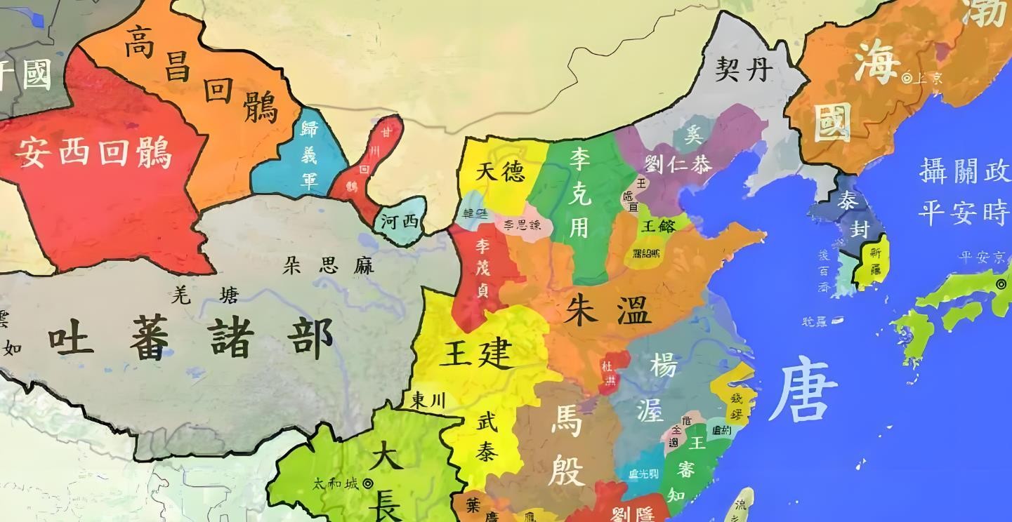 近10年的黄巢之乱,起义军南北流击,唐朝数百年的基业已面目全非。而朱全忠、李克用等纷纷割据一方,藩镇林立、各自为政,又相互攻伐,唐朝政权逐渐名存实亡。