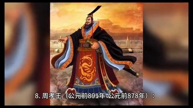 ·8.周孝王(公元前891年-公元前878年):继位后周朝面临严重的内外问题,是周朝的第八位皇帝。