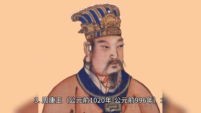 ·3.周康王(公元前1020年-公元前996年):在位期间国力达到鼎盛,是周朝的第三位皇帝。