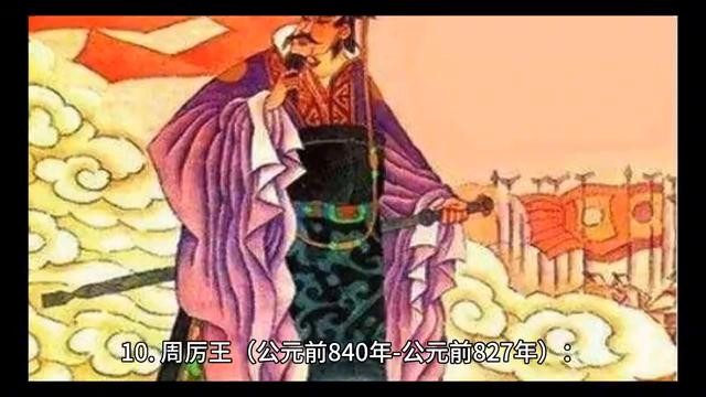 ·10.周厉王(公元前840年-公元前827年):面临着越来越多的内外压力,周朝开始走向崩溃,是周朝的第十位皇帝。