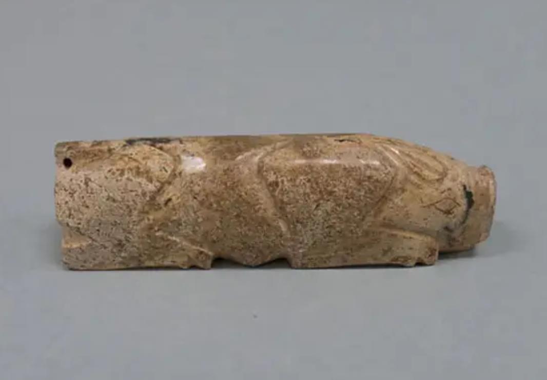 汉朝的玉握,所雕刻的一头猪的形象。