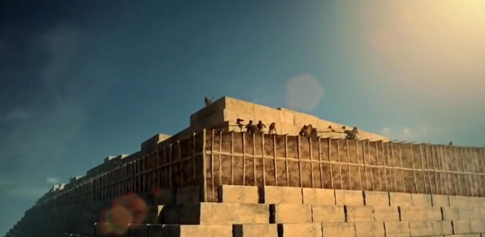 当地基建好后,埃及人使用棍棒和绳子来定位金字塔的周边