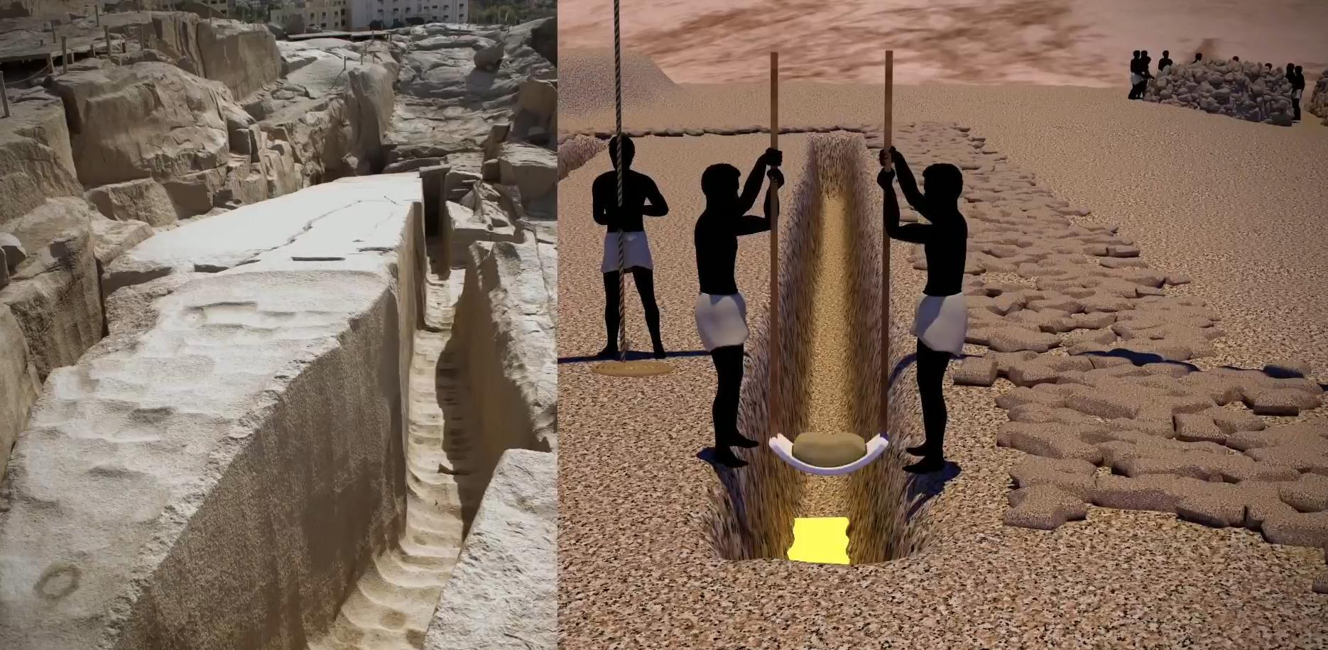 只需将花岗岩融化成30厘米的碎片,再通过船只运送到900公里外的吉萨,这些带有融化痕迹的花岗岩和掉入熔岩中凝固的辉绿岩,都证实了这一说法