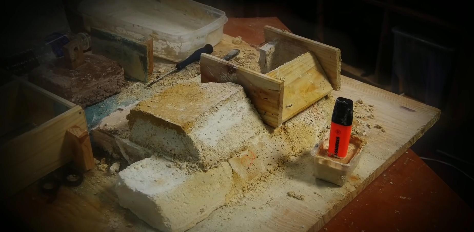 这里的工人一队挖掘石灰石,一队进行混合,然后再将混合好的泥土通过阀门运到模具中,这将用于创建地基和地下隧道
