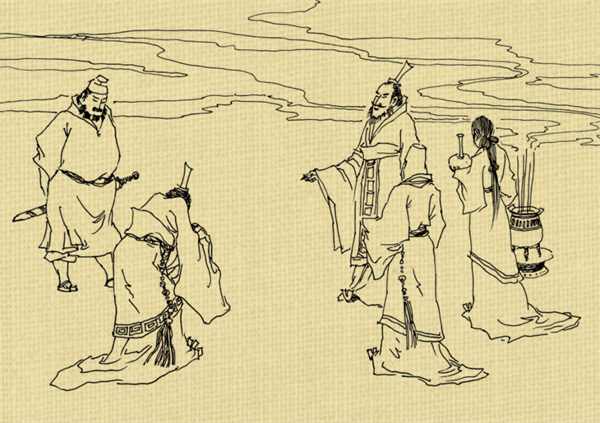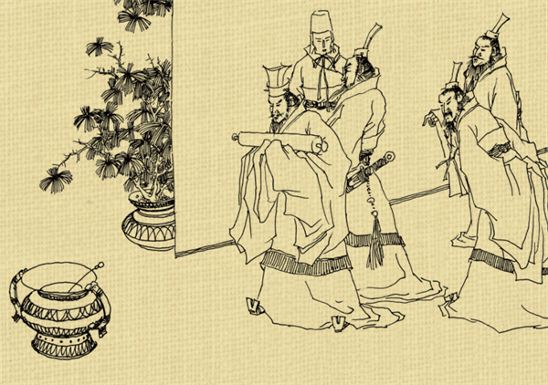 一次,楚国要进犯齐国,淳于髡奉齐威王之命到赵国搬来救兵,吓退了楚国。齐威王非常高兴,特意摆下酒席招待淳于髡。