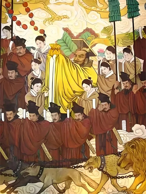 终于,封禅的那一天来临,整个泰山都热闹非凡。秦始皇身穿华丽的龙袍,走在最前面,身后跟着一大群大臣和随扈,场面壮观得如同现代的明星走红毯。仪式开始后,秦始皇首先向天祭拜,表达自己对上天的敬畏和对国家的期望。他用手中的权杖指向天空,仿佛在宣告:“你们看,我就是天选之子!”