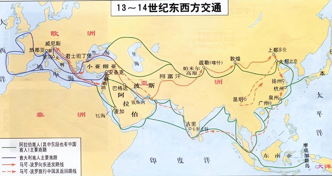 奥斯曼帝国占领了东罗马帝国,对来往的商人进行横征暴敛,阻断了欧洲商人和亚洲的货物贸易。于是,西欧沿海的葡萄牙、西班牙、荷兰、英国、法国这些国家便开启了新航路的开辟。他们企图通过从海路来到中国,和中国进行贸易。而这一场新航路开辟造就了地理大发现,将整个世界联系了起来,也开启了欧洲的殖民时代,大大加速了世界历史的进程。