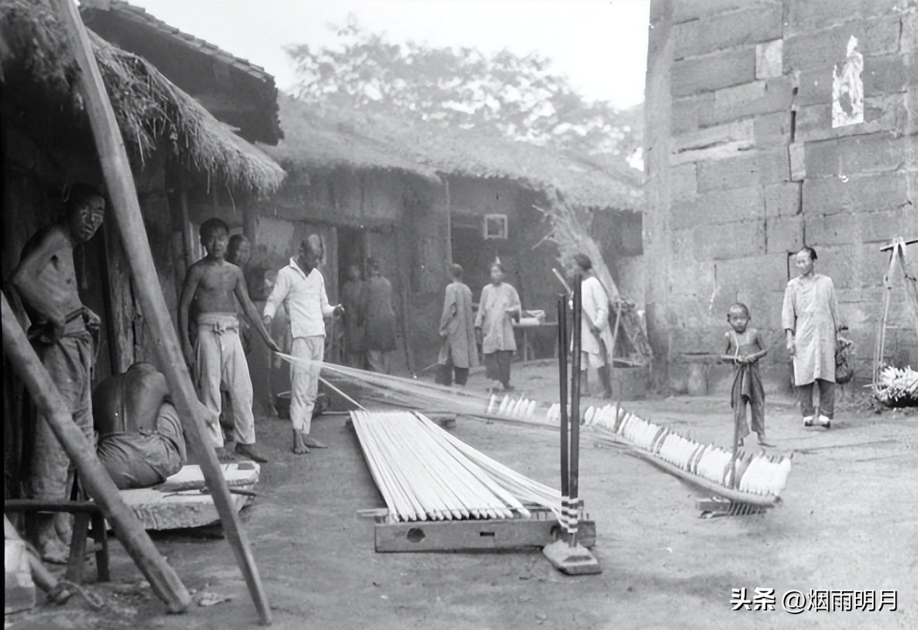 照片中的妇人正在纺线,大家还记得这个场景吗?我小时候看到奶奶这样做过。