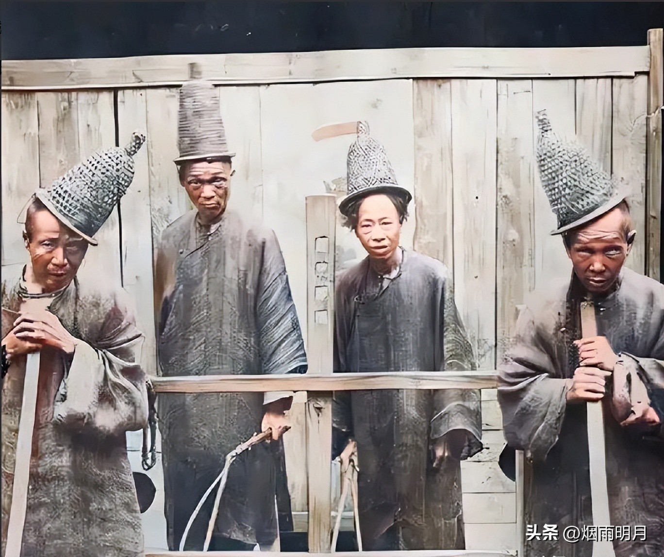 再看看这些晚清衙门的衙役,这些奇特的造型也是没谁了,其实也都是一些苦难的民众,为了讨口饭吃,万恶的清统治者们过着奢靡的生活,可底层的老百姓却是活得苦不堪言。