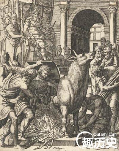 铜牛,也称西西里公牛,其是当地最为残酷的刑罚。该酷刑源自古希腊,其是用黄铜铸造的一只中空公牛,在其一侧有门和门栓。