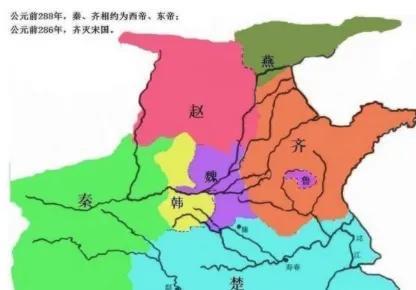 公元前288年,齐、秦并称东、西帝。