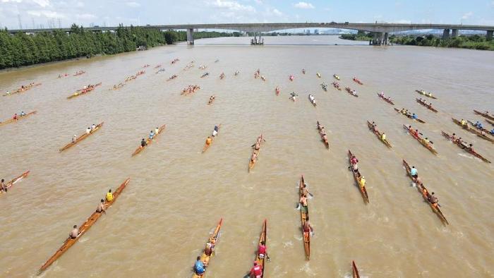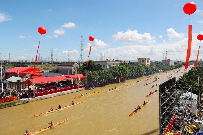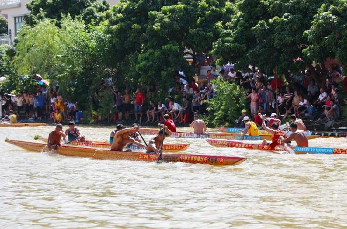 选手们你追我赶奋力伐楫。