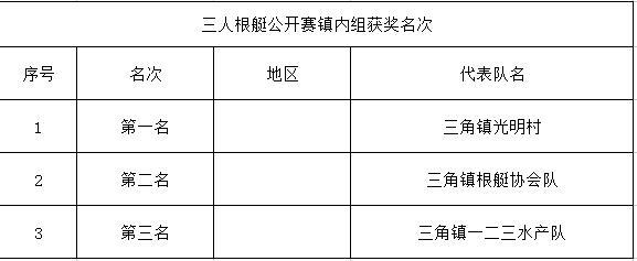 三人根艇公开赛镇内组获奖名次。