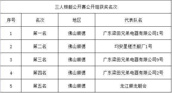 三人根艇公开赛公开组获奖名次。