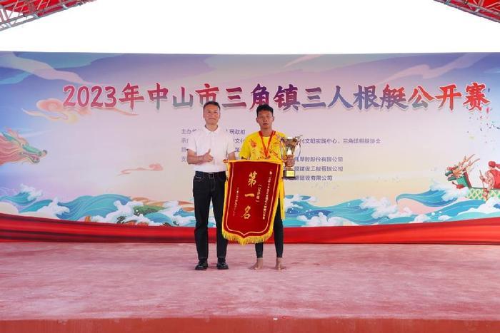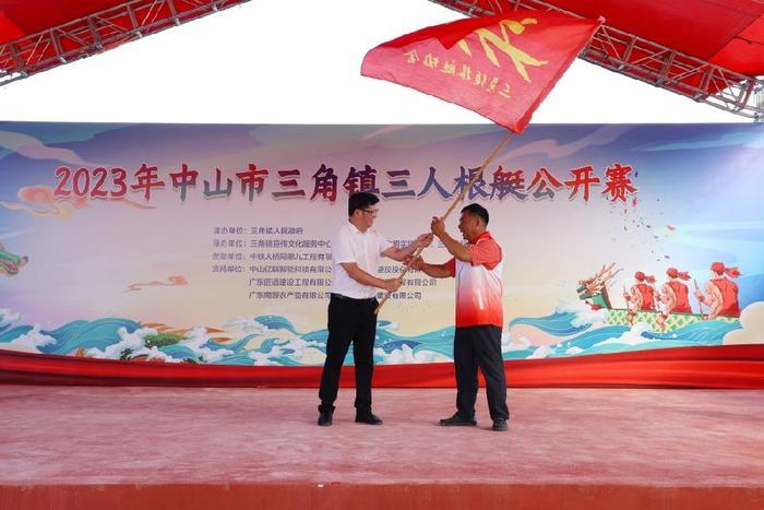三角镇党委书记李宗,中山市教育工委委员、中山市教育和体育局党组成员、副局长陈威,中铁大桥局集团第九工程有限公司党委书记、执行董事郑大超,三角镇党委副书记梁庆明分别为相关获奖组别颁奖;李宗、陈威,三角镇党委副书记何永远,三角镇根艇协会会长李健球为根艇文化馆揭幕;何永远为三角镇新时代文明实践根艇协会志愿服务队授旗。
