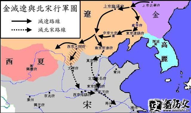宋徽宗眼见辽国日渐衰落,遂兴起了趁火打劫的念头,想要借由金国的兵力一举将宿敌辽国永远从地图上抹去。于是,自重和元年起,宋徽宗便多次派口才出众的使节马植远渡重洋与金国相谈灭辽事宜,甚至不顾朝中诸多有识之士反对的声音,一意孤行。至宣和二年,海上之盟结果是签订了,细节也谈妥了,随即便是双方出兵,夹攻辽国,通过惨烈的战争,果然达到了一举消灭辽国的战略目的。