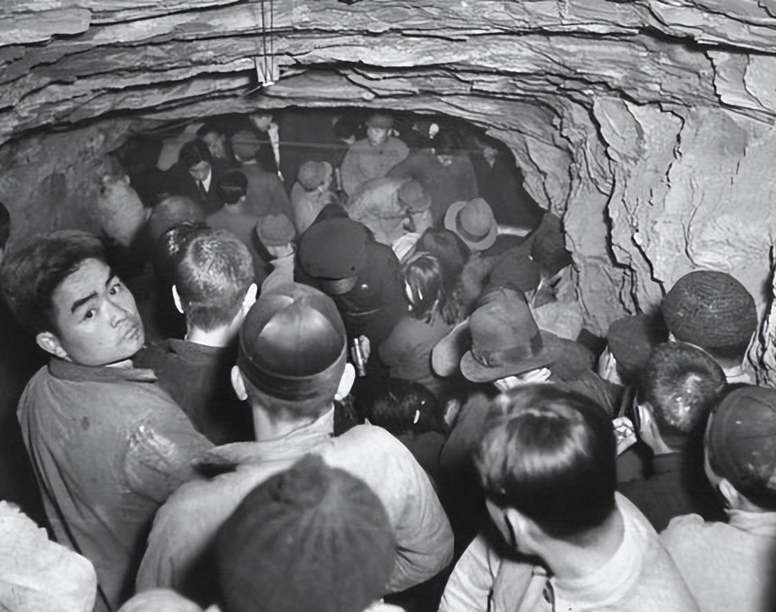 1941年6月5日晚9点左右,日军出动24架飞机分三批轮番轰炸重庆,空袭时长达5个小时,大量民众拥向公共防空隧道(十八梯大隧道)中,防空洞里人满为患。