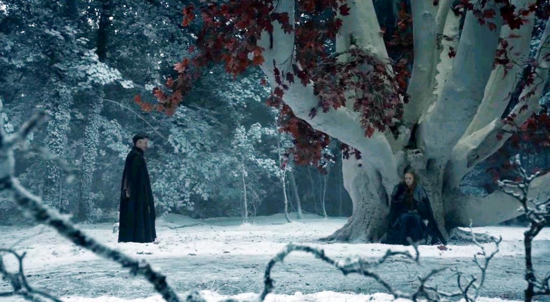 烈火焚城后,临冬城有两处地方彰显了它们的神奇,其一是安葬历代史塔克的地下墓窖,其二就是神木林。墓穴深处地下,没有烧起来似乎合情合理,神木林就不一样了,它就在地面上,并且人们的认知中,树木是易燃的东西。