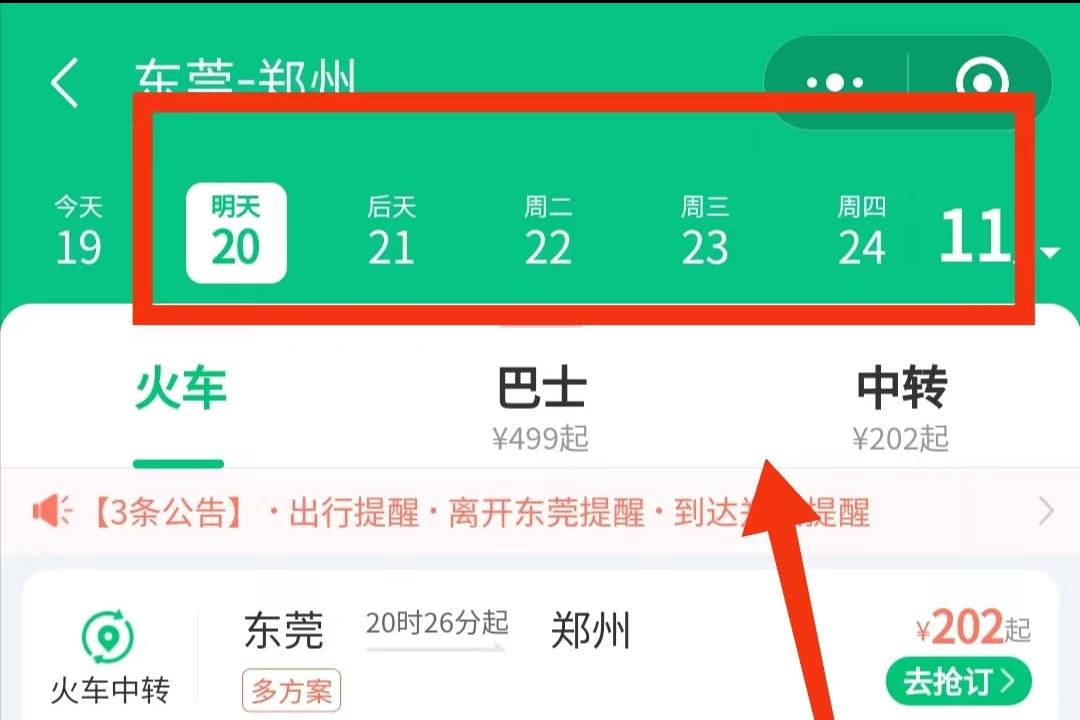 第五步:点击上面的日期,选择自己的出发时间,现在最多可以提前15天买票。