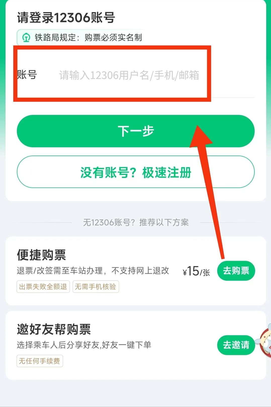 第七步:使用12306需要登录账号,如果没有可以直接注册一个,点击“没有账号,极速注册”。