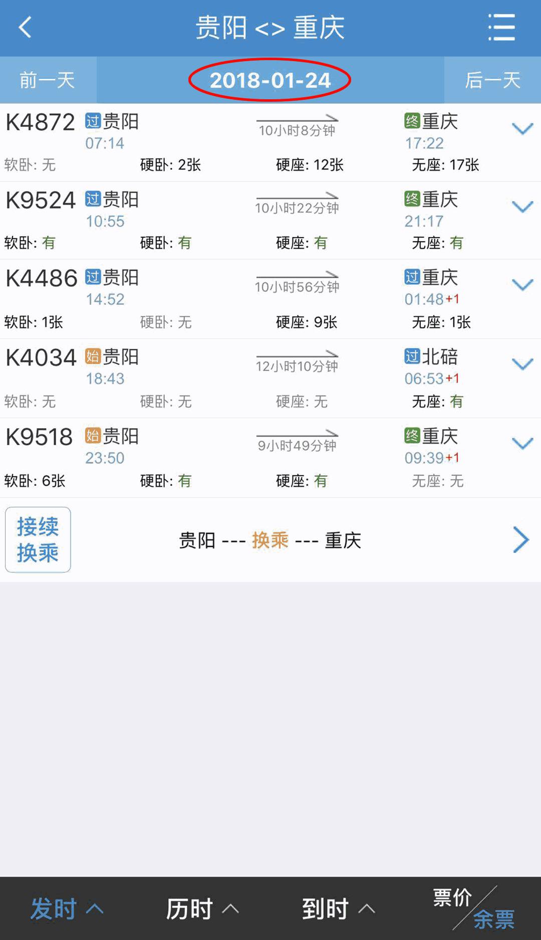 25号后,贵阳到重庆、西安的车票咋买不到拉?怎么车次信息都不显示了哦?