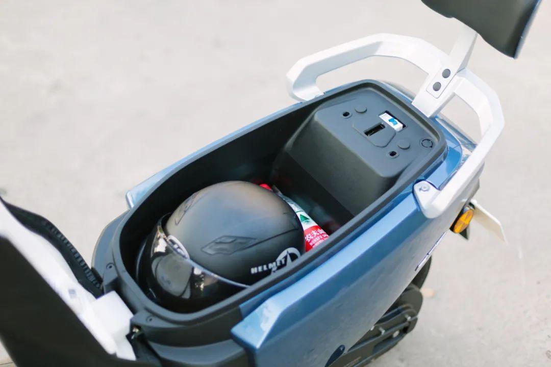 另外ET2还采用液晶仪表盘设计,并配有USB充电接口,加上20L储物座桶,可以轻松容纳多种出行储物需求。此外,ET2两边车把位置设有多功能按键,可实现一键启动、档位调节、倒车、修复等操作,这些功能也能完全满足普通人的日常出行。