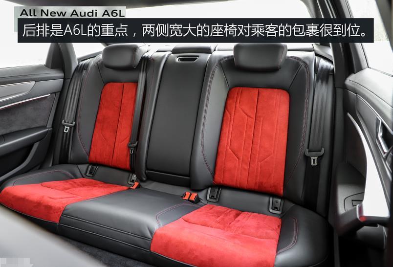 至于空间表现方面,轴距加长后也让奥迪A6L有着超大的后排空间,基本上是让你轻松在后排翘起二郎腿。不过作为一款四驱车型,传动轴难免会侵占到后排地台的空间。