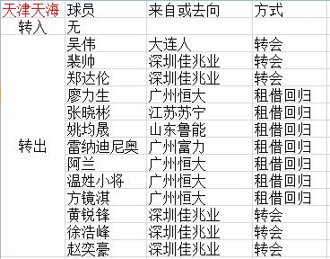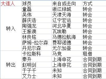 转入球员:闫浩(租借回归)、魏鹏(租借回归)、多拉多(租借回归)。