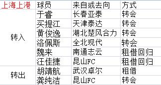 转出球员:胡靖航(卓尔)、龚纯洁(昆山)。