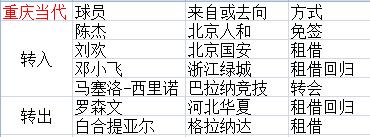 转出球员:罗森文(华夏)、白合提亚尔(格拉纳达)。
