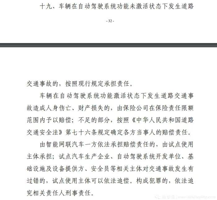 现在不一样了,这个文件对于车子在L3、L4级别应该达到什么样的能力,车子的网络安全问题和数据安全保障能力,车子使用主体应具备的条件,上路通行前后应符合哪些要求,发生事故后责任认定问题等作出了明确规定。这样就为自动驾驶实施层面的风险和责任认定提供了有效依据,为L3级别以上的自动驾驶的进一步突破发展提供了政策法律层面的依据。