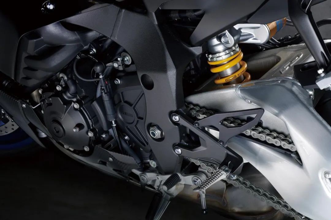 动力部分,雅马哈R1和R1M搭载同款的,998cc直列四缸水冷发动机,依然采用经典的十字曲轴设计。最大功率147.1kw(200Ps)/13500rpm,最大扭矩113.3Nm/11500rpm,R1和R1M的输出数据保持一致。