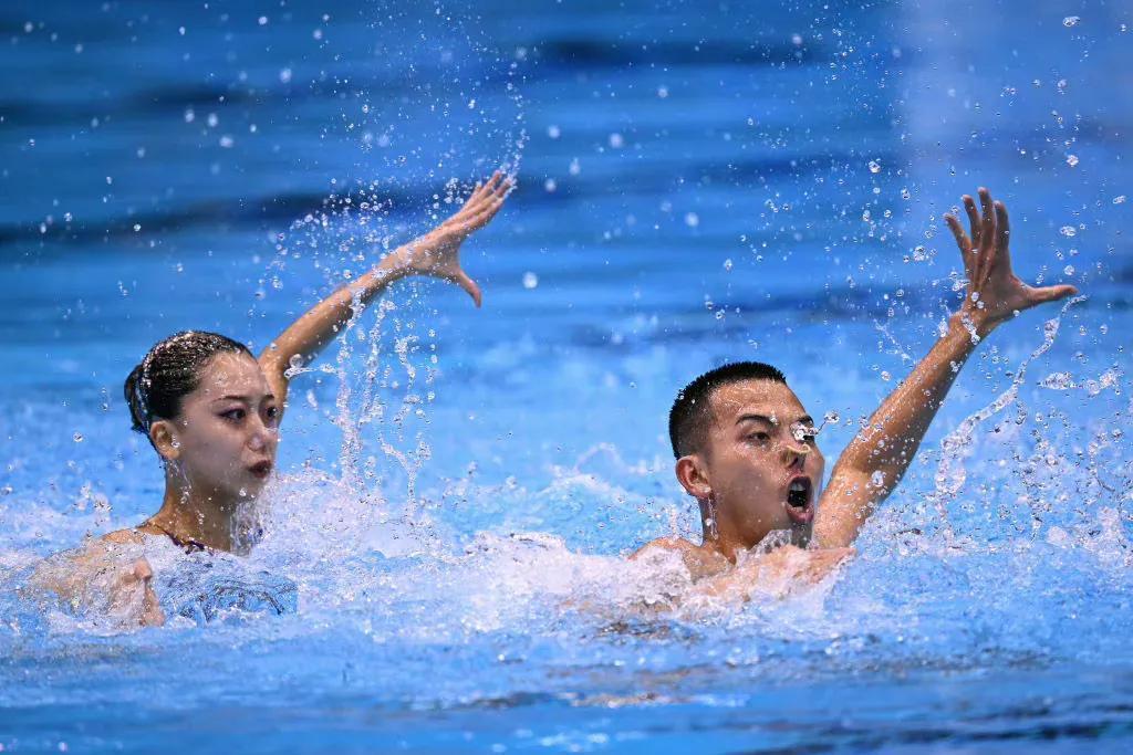 花样游泳混双技术自选决赛中国组合石浩玙和程文涛以《势不可挡》为主题的动作获得247.3033分摘得铜牌,这是中国花样游泳队本届世锦赛的首枚奖牌。日本组合佐藤友花和佐藤洋太郎以255.5066分夺得金牌,西班牙组合获得银牌。