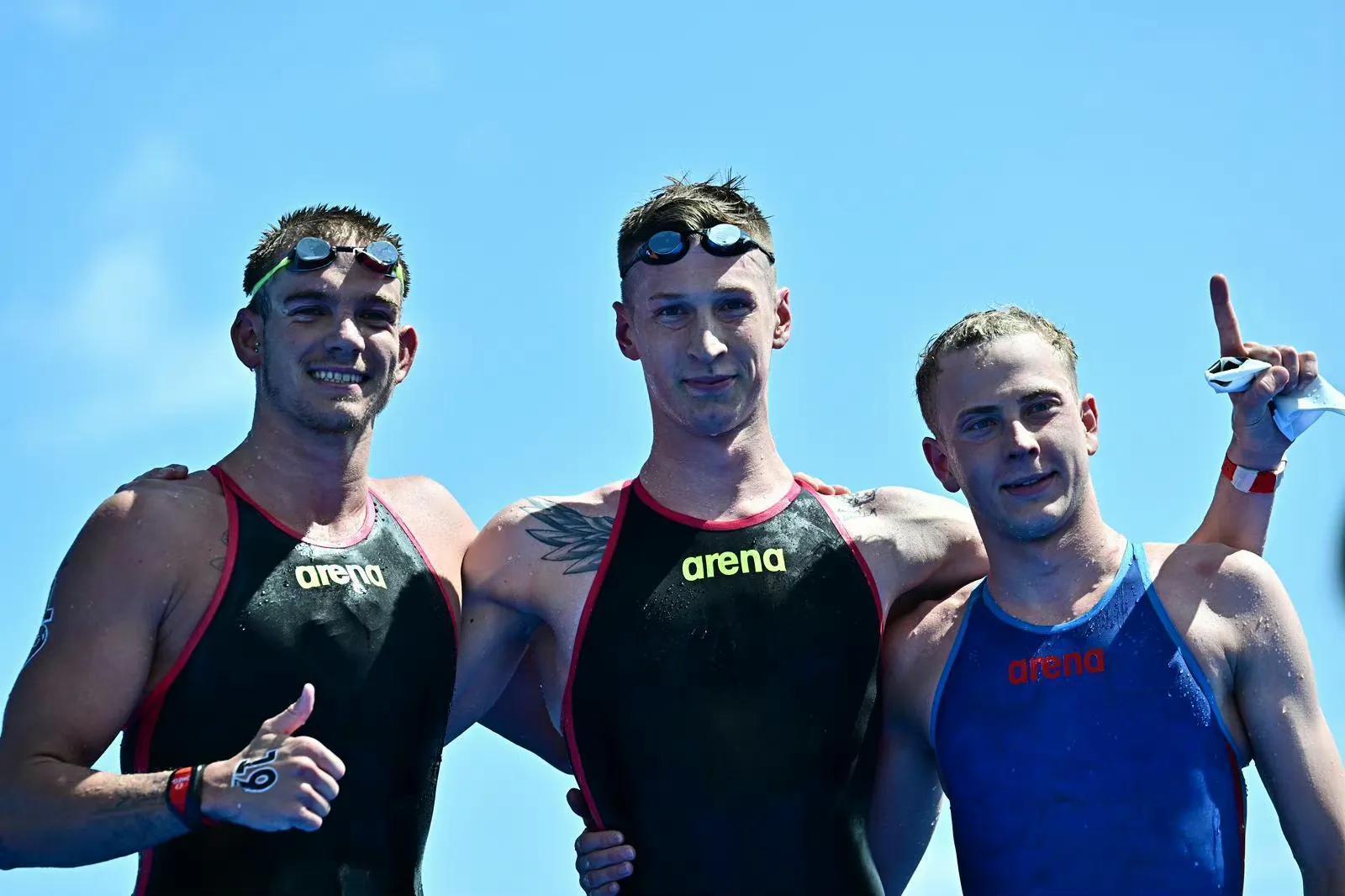 男子10公里游泳决赛德国选手韦尔布罗克以1小时50分40秒30的成绩夺得金牌,匈牙利选手拉索沃斯基以1小时50分59秒摘得银牌,德国选手克莱梅特以1小时51分00秒80获得铜牌,中国选手兰天辰和张子扬分列第41名和第46名。
