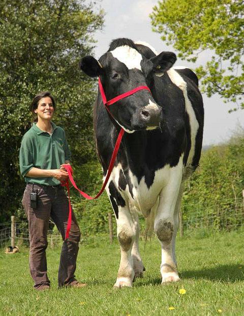 世界上最大的奶牛名叫“大奶牛红辣椒”,它的身高为6英尺6英寸(约合1.95米),体重超过1吨。