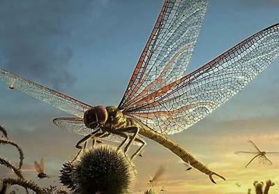 巨脉蜻蜓是已知地球上出现过的最大的飞行昆虫。它的平均翼展大约在0.65米左右,最大可达到0.75米。它们的翼展虽然很大,可是身体却不是特别大,但是如果放在今天,依然是个巨型昆虫。试想一下,一个半米大的蜻蜓飞在你的面前,你会有怎样的感受。。。