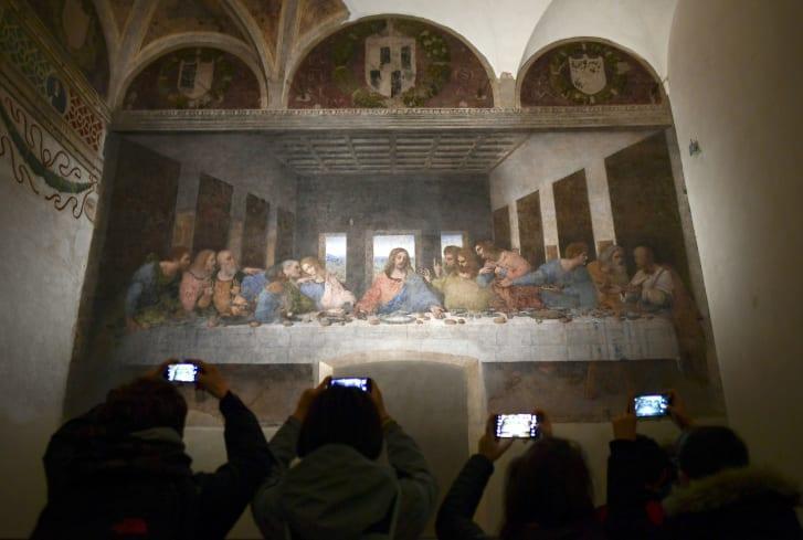 你知道吗?这幅壁画经历了两次战争时期的威胁——拿破仑的军队将画有壁画的食堂墙壁当作靶子练习。二战期间的轰炸摧毁了米兰圣玛丽亚修道院的屋顶,使壁画暴露在残垣断壁中长达数年。