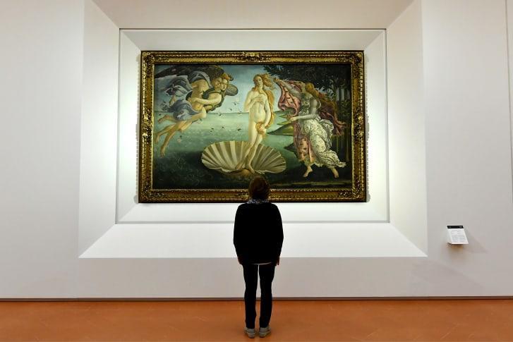 你知道吗? 波提切利的《维纳斯》 有两个显著的特点,与他同时代的大多数其他作品不同。首先,他在画布上作画,而不是更流行的木头。其次,裸体在当时是很罕见的。因此,维纳斯不完全暴露在外面,只露出一头飘逸的长发,一只手遮住了她最私密的身体部位,这是非常大胆的。