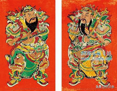 相传远古时候, 神荼与郁垒为一对兄弟成为幽冥双神,兄弟俩都擅长捉鬼,如有恶鬼出来骚扰百性,神荼与郁垒两便其擒伏,并将其捆绑喂老虎。后来人们为了驱凶,在门上画神荼、郁垒,亦有驱鬼避邪之效果,而流传至今。左扇门上叫神荼,右扇门上叫郁垒,中国古代民间称他们为门神。