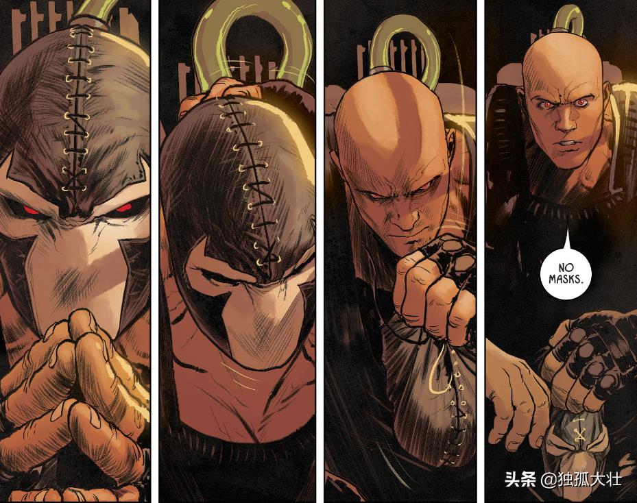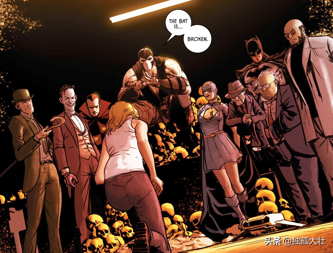 编剧Tom King用80期的漫画故事将贝恩打造成统治整个哥谭市的终极BOSS,但是他却仅仅用一期漫画将贝恩这个角色营造出来的那种“逆天”的感觉全部破坏。