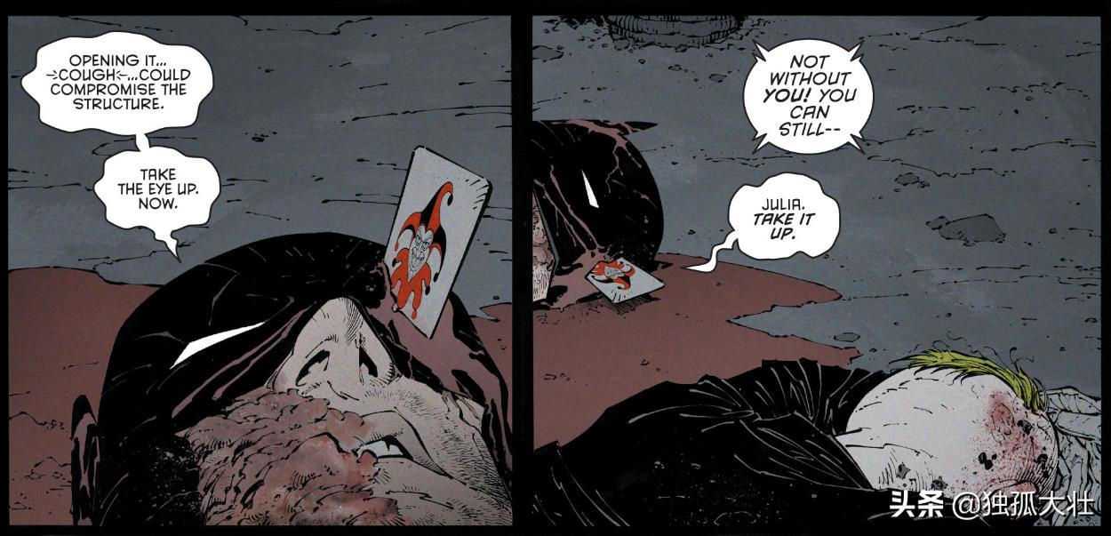 贝恩给蝙蝠侠带来了太多的伤痛,而他们之间的战斗应该和《新52蝙蝠侠》中的“终局之战”一样,小丑用毒气控制了整座城市,而蝙蝠侠在绝境中需要找到最原始的“酒神因子”,他在哥谭地下的矿洞中和小丑决战,为了拯救这座城市,放弃了生的希望,最终选择和小丑同归于尽。