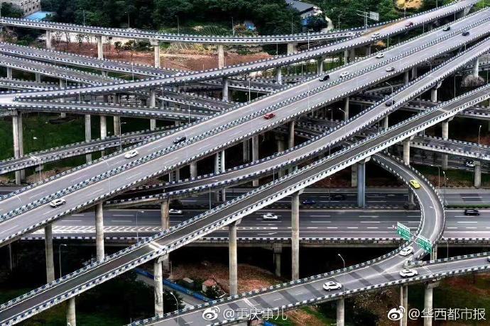 这是重庆主城区最大最复杂的立交,共8个方向5层20个匝道,听着都吓人。高德地图已哭瞎!