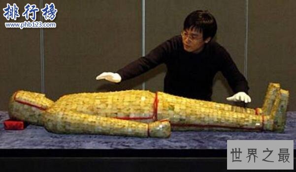 1968年,河北满城一号墓出土中山靖王刘胜的金缕玉衣。它用一千多克金丝连缀起2498大小不等的玉片,金丝重1100克,窦绾的玉衣共用玉片2160片,金丝重700克,其制作所费的人力和物力十分惊人。