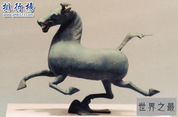 马踏飞燕又名“马超龙雀”、“铜奔马”,是东汉青铜器,1969年在甘肃省武威雷台墓出土。奔马身高34.5厘米,身长45厘米,宽13厘米。