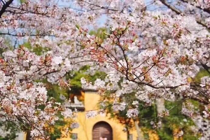 樱花盛开才是鸡鸣寺一年中最美的季节,也是最热闹的季节,赏花的人们沿着鸡鸣寺路一路走到鸡鸣寺,洁白的樱花掩映着庄严的黄色庙墙,就像一幅已经绝美的中国画。