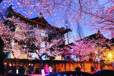 不喜欢凑热闹的人也可以选择晚上去鸡鸣寺看夜樱,朱自清在他的散文《南京》中曾写道:劝你上鸡鸣寺去,最好选一个微雨天或月夜。在朦胧里,才酝酿着那一缕幽幽的古味。你坐在一排明窗的豁蒙楼上,吃一碗茶,看面前苍然蜿蜒着的台城。