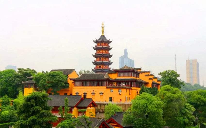 这个佛塔是——药师佛塔,是鸡鸣寺的最高建筑,始建于公元507年,后被毁,我们现在看到的佛塔是1988年重建的。